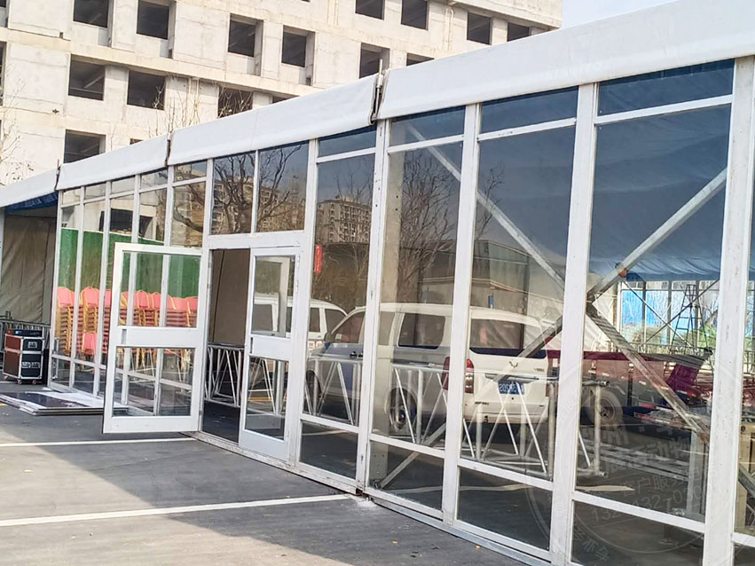 鄭州篷房廠家通過加厚型材并增加固定措施,可以提高篷房的抗風能力。鄭州篷房廠家