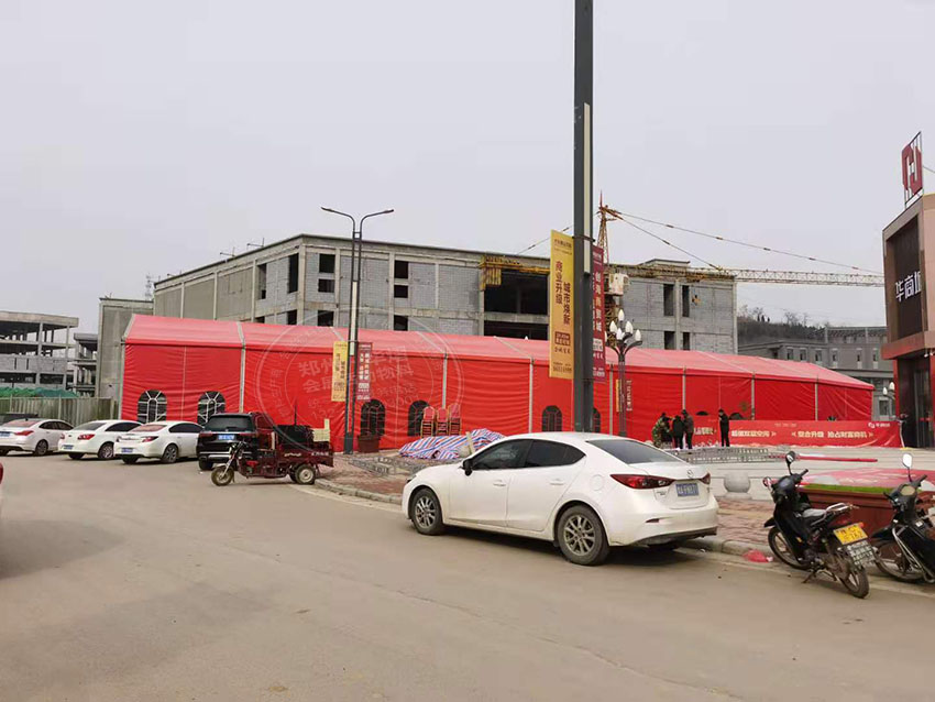 洛陽嵩縣華南城活動現(xiàn)場華熠為其提供紅色篷房租賃,隨著時代迅猛發(fā)展,日減增加的