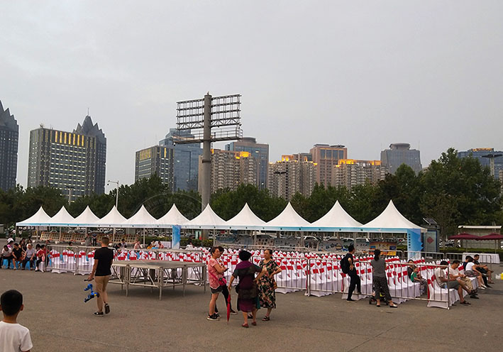 鄭州尖頂篷房租賃出租公司搭建對(duì)基礎(chǔ)要求不高,可充分利用部分空地進(jìn)行搭建 ,