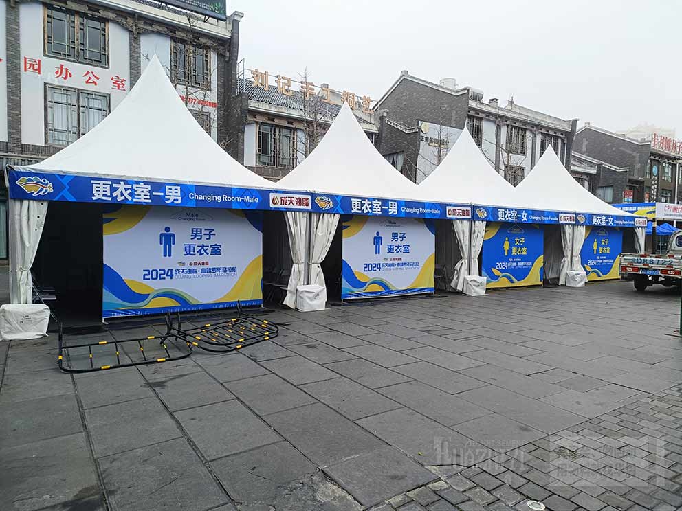 華熠帳篷具有出色的耐用性和穩(wěn)定性。馬拉松活動現(xiàn)場往往人流量大,對帳篷的耐用性要求較高。華熠帳篷采用高質(zhì)量的材料和工藝制造,能夠承受各種天氣條件下的考驗,確保活動現(xiàn)場的穩(wěn)定和安全。