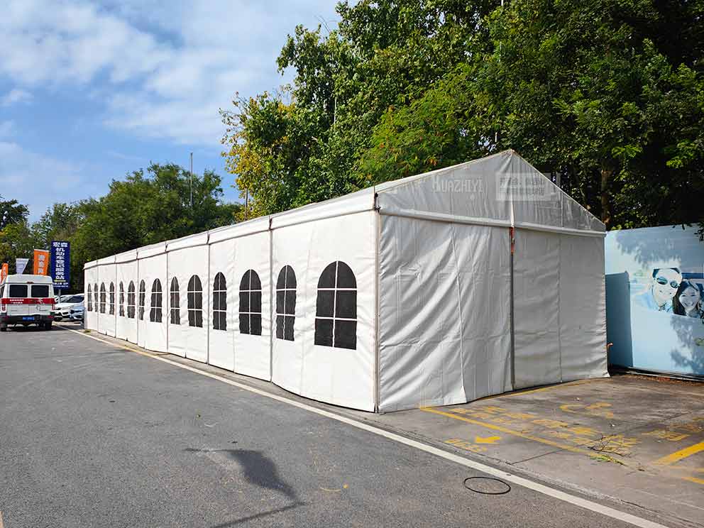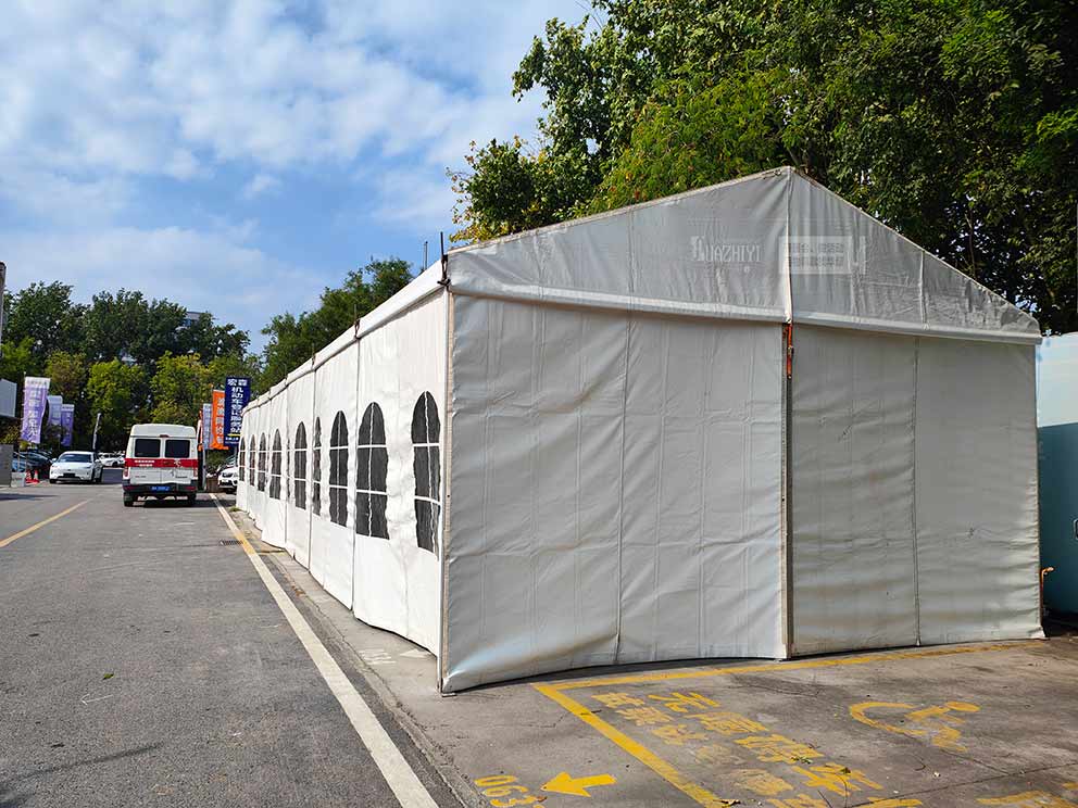 華熠篷房租賃公司憑借豐富的搭建經驗和專業的施工團隊,在短時間內完成了這座臨時展廳篷房的搭建工作。我們不僅注重篷房的穩固性和安全性,更在細節處理上精益求精,確保每一個細節都能達到更佳效果。
