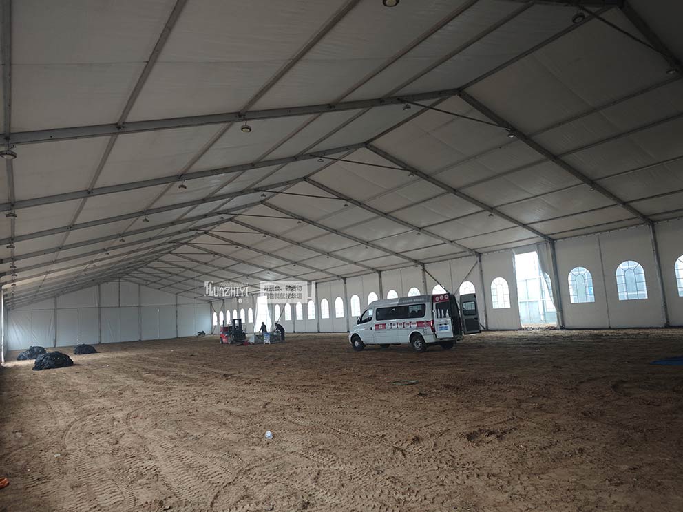 鄭州玻璃篷房租賃公司為中原地展搭建了一座展銷會篷房。鄭州華熠公司經常在各種活動上搭建篷房,例如車展,有時是婚禮,又或者演唱會安檢...可以說是多種類型多種材質,華熠公司都支持搭建。現在,中原地展的大跨度篷房也已經搭建完畢,一起來看看吧。