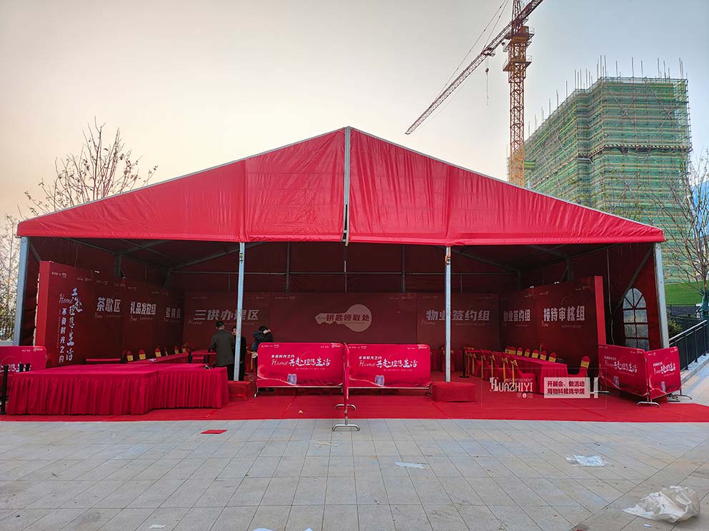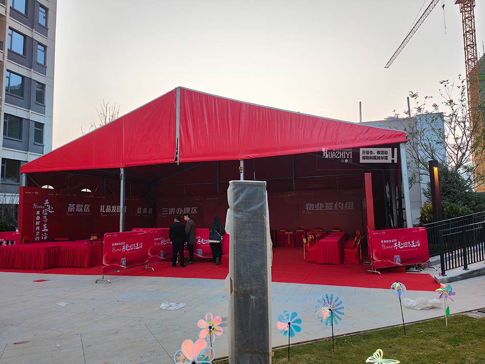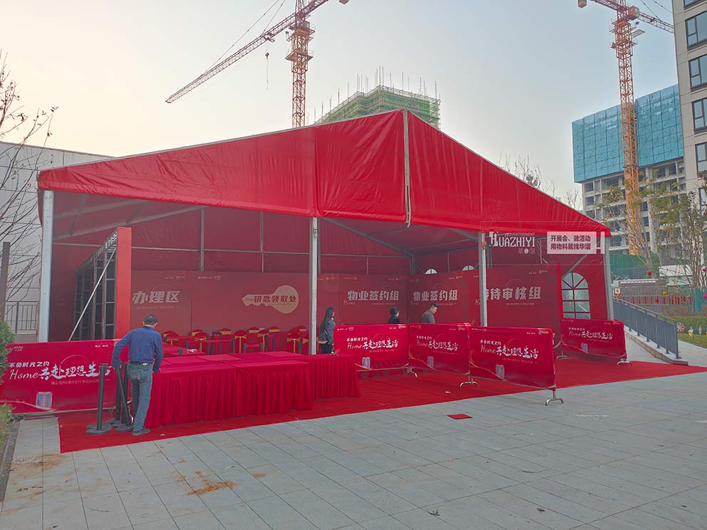 此外,紅色篷房還具有一定的靈活性,可以根據(jù)地產(chǎn)商的實際需求進行定制化設計。無論是篷房的尺寸、形狀還是內(nèi)部布局,都可以根據(jù)項目的特點和購房者的需求進行調(diào)整,以滿足不同場景下的使用需求。