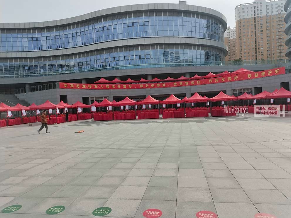 鄭州帳篷廠家助力金水區(qū)退役軍人招聘會(huì)搭建數(shù)頂紅色簡(jiǎn)易帳篷。在華熠優(yōu)質(zhì)的帳篷產(chǎn)品和服務(wù)下,預(yù)祝招聘會(huì)順利舉行!
