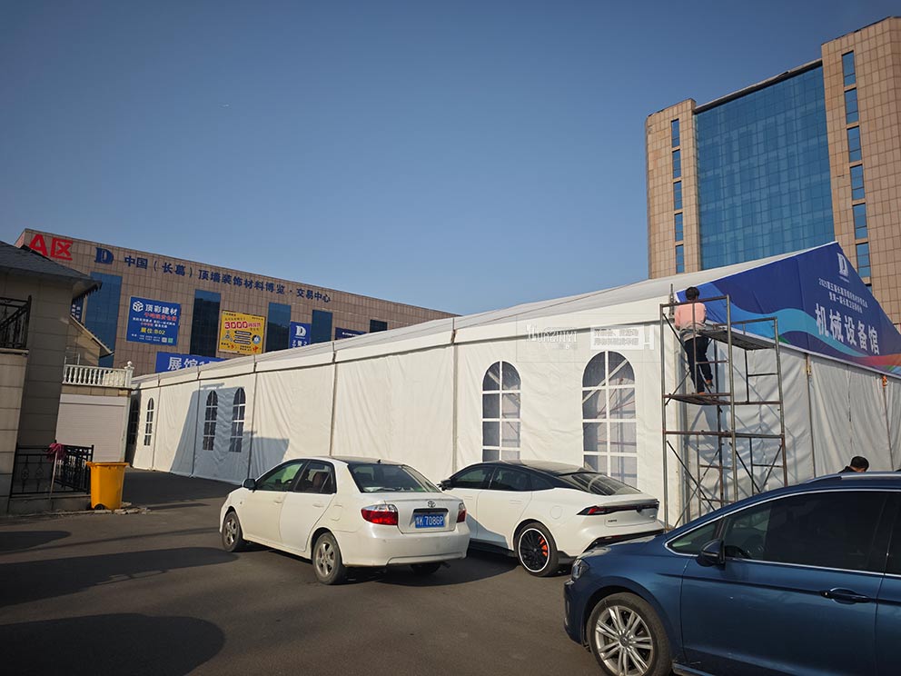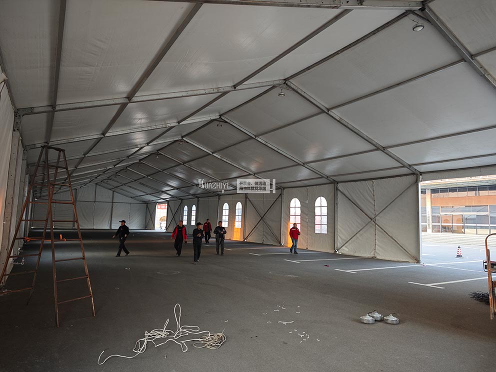 鄭州篷房租賃搭建展銷(xiāo)會(huì)貿(mào)易交流篷房現(xiàn)場(chǎng)。河南長(zhǎng)垣即將舉行的一場(chǎng)頂墻裝飾材料博覽會(huì)上,華熠公司卻在開(kāi)始之前就來(lái)到了這里開(kāi)始施工,這是因?yàn)楝F(xiàn)在的短時(shí)間展會(huì)交易會(huì)通常會(huì)選擇搭建篷房來(lái)使用,篷房搭建高效靈活,相比去尋找一處建筑空間,價(jià)格還是更合適的。
