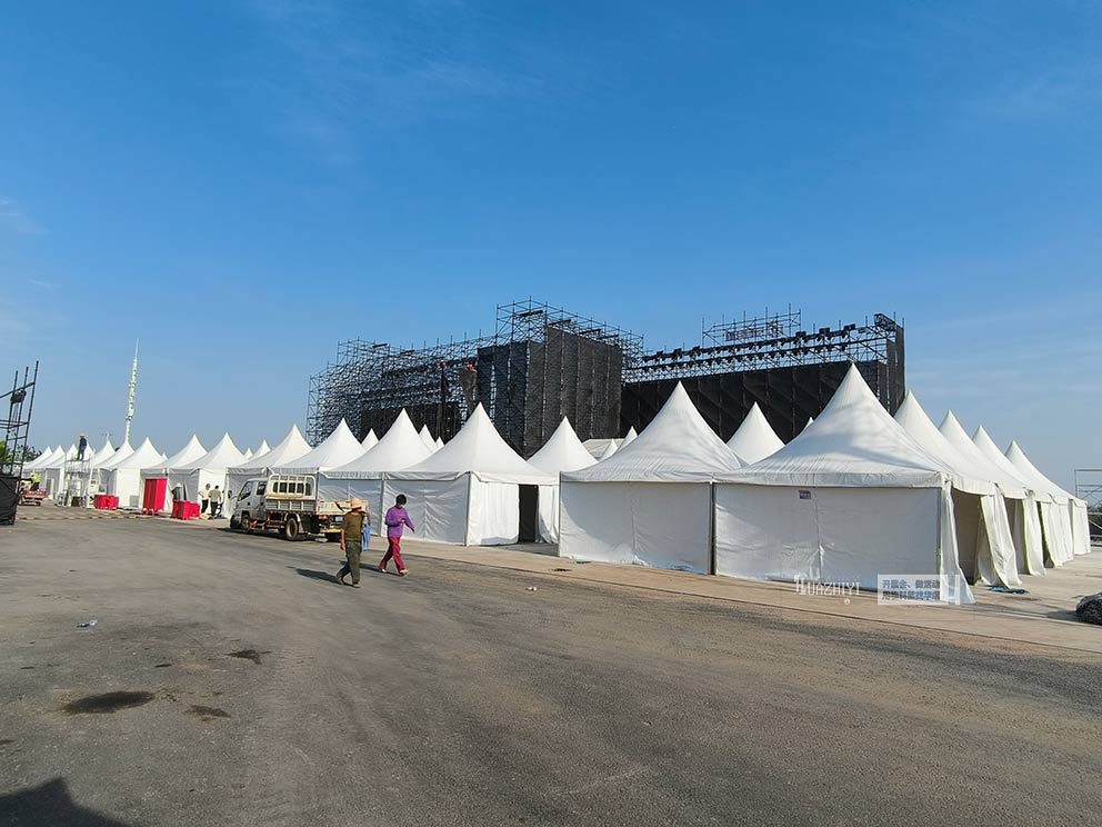 鄭州婚禮篷房租賃夏天使用篷房有哪些優勢?空間定制與場景融合賦予婚禮無限創意可能。華熠篷房租賃公司可以提供6-10米跨度、3-6米邊高的多樣化規格,可組合搭建200-2000平方米的異形空間。配合紗幔、燈光等軟裝,能完美適配中式漢婚、西式草坪婚禮等不同主題。