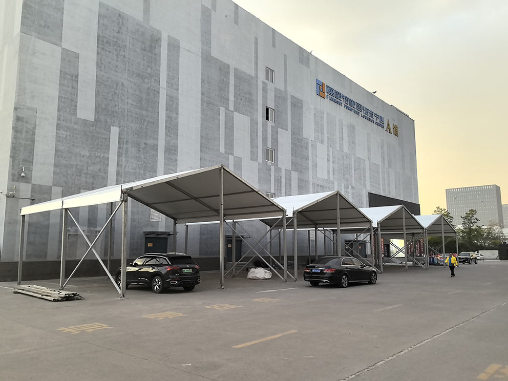篷房的許多部件在倉庫就已完成預(yù)裝配:斜撐與橫梁的角度提前校準,篷布上的卡扣位置預(yù)先固定,甚至連防風繩的長度都按場地類型分檔備好。現(xiàn)場搭建時,工人只需將預(yù)裝好的部件整體對接,省去大量調(diào)試時間。