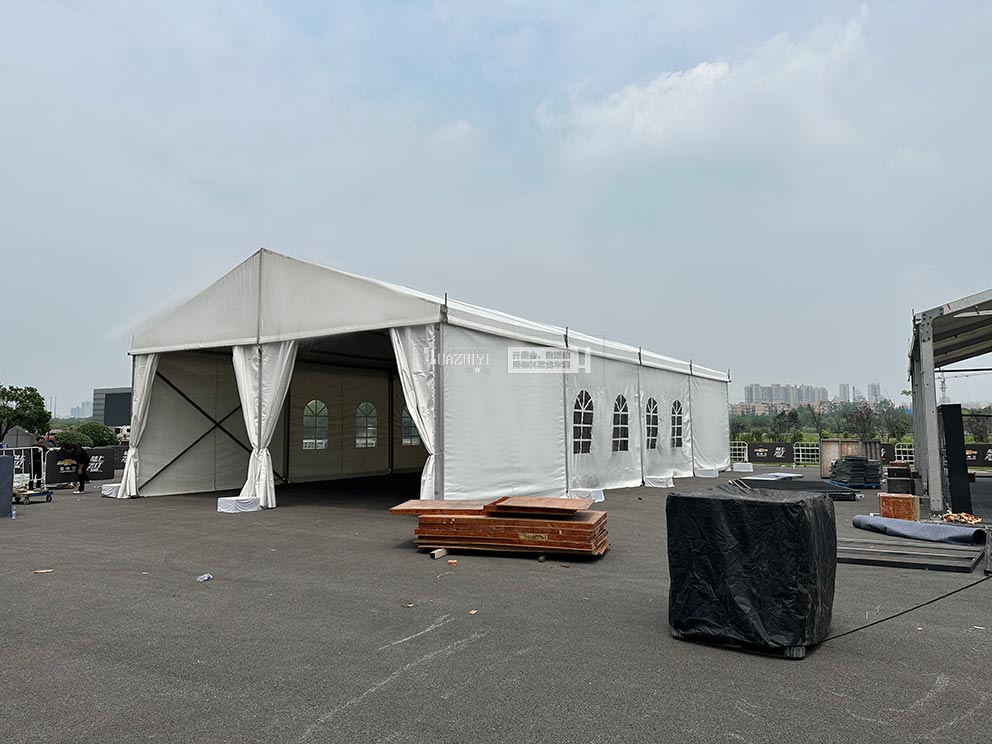 鄭州篷房租賃為秋季活動推薦的篷房,在材質選擇上就自帶“防護屬性”。頂篷優先選用雙層 PVC 防雨篷布,外層經過防潑水涂層處理,雨水落在表面會快速滑落,不會滲透。支架則選用鋁合金材質,重量輕但承重與抗風能力強,能有效抵御秋季常見的陣發性大風,避免支架彎曲或坍塌。